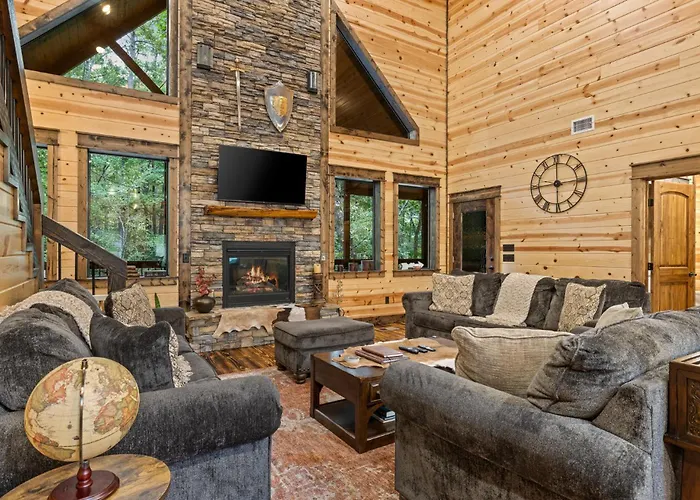 During the stay at New! Sherwood Chateau - Borders National Forest, 1 Mile To Lake, Secluded!, guests can indulge in a Jacuzzi or visit Hochatown State Park, located about a 25-minute walk away. The 4-bedroom villa features opportunities for water sports activities, hiking, and fishing in the area, approximately 10 minutes' drive from Cedar Creek Golf Course at Beavers Bend.
